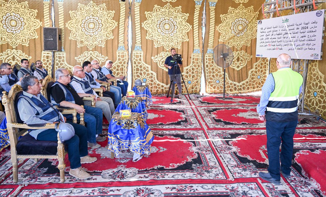 ثم قام بجولة تفقدية في الموقع الذي يمتد لمساحة ١٧ فدان وحرص على اجراء حوارات مع العاملين والإستشاريين التنفيذين بالمشروع,واستشاري البنك الأوروبي , مشيدا بالجهد المبذول من كافة العاملين بالمشروع وكذا الدور المجتمعي الذي تقوم به مصانع وشركات الهيئة في خدمة المجتمع والمواطن